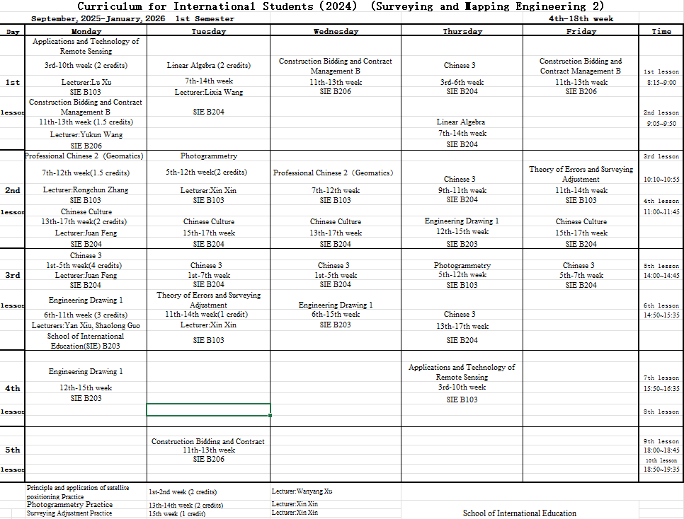 Curriculum for International Students Surveying and Mapping Engineering Grade 2